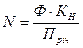 де Ф – об’єм роботи за рік, який необхідно виконати для забезпечення нормальної роботи цеху, м3; КН – коефіцієнт, який враховує нерівномірну подачу деревини; Пріч – річна продуктивність обладнання, м3.