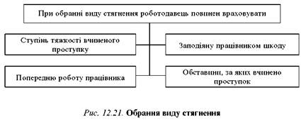 • Обираючи вид стягнення, роботодавець повинен враховувати певні умови (рис. 12.21).