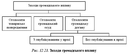 • Товариський суд може застосувати до порушника трудової дисципліни один із заходів громадського впливу (рис. 12.23)1.
