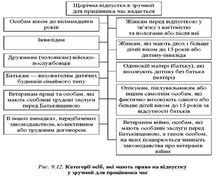 Щорічні відпустки за бажанням працівника в зручний для нього час надаються згідно зі ст. 10 Закону (рис. 9.12).