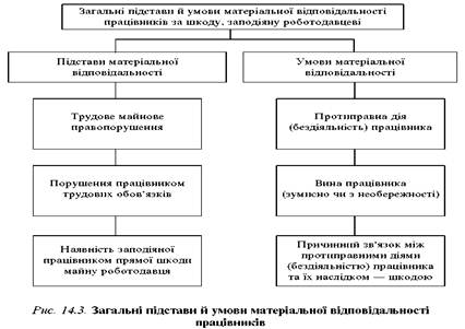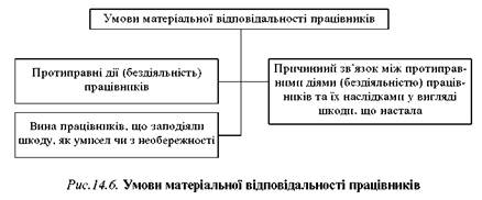 У ст. 130 КЗпП визначено загальні підстави й умови матеріальної відповідальності працівників (рис. 14.3).