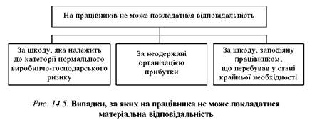 На працівників не може покладатися матеріальна відповідальність у випадках, зазначених на рис 14.5.