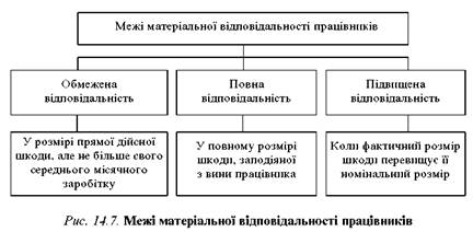 Межі матеріальної відповідальності працівників подано на рис. 14.7.