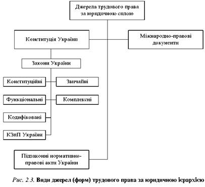 Юридична ієрархія (юридична сила) визначає значення нормативно-го акта (його верховенство чи підлеглість) порівняно з іншими дже-релами трудового права (рис. 2.3).