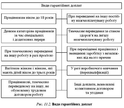 Гарантійні доплати — це суми, які виплачуються працівникові понад заробітну плату при скороченні робочого часу або переведенні на іншу роботу у встановлених законом випадках для збереження працівнику середньої заробітної плати.