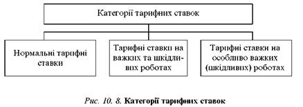 Поділ тарифних ставок залежно від умов праці за категоріями показано на рис. 10.8.