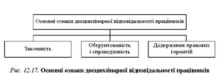 Основні ознаки дисциплінарної відповідальності працівників наведено на рис. 12.17.