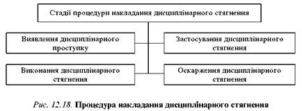 Стадії процедури накладання дисциплінарного стягнення наведено на рис. 12.18.