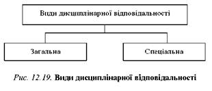 Види дисциплінарної відповідальності. Трудове законодавство залежно від джерела регулювання розрізняє два види дисциплінарної відповідальності (рис. 12.19).
