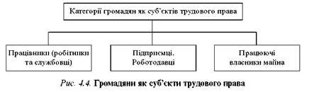 Чинне законодавство про працю розрізняє такі категорії громадян як суб’єктів трудового права та види їх правового статусу (рис. 4.4).