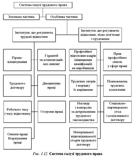 Трудове право як сукупність правових норм має свою систему, яка найповніше відображена в КЗпП1. Структурно система галузі трудового права складається з двох частин: Загальної та Особливої (рис. 1.12).