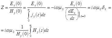 Якщо метал лiнiйний, то внаслiдок лiнiйностi рiвняння (1.3.1) поверхневий імпеданс не залежить вiд амплiтуд електричного i магнiтного полiв i визначається лише параметрами металу.