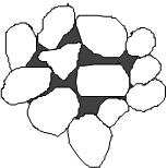 Рис 1.4.1. Плівка ВТНП з включеннями ненадпровідної фази: а - модельне представлення; б - гранули, розділені ненадпровідними прослойками.