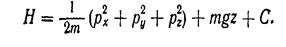 У рівність (а) підставляємо узагальнені швидкості, отримані з рівнянь (b). Знаходимо гамильтоніан розглянутої точки: