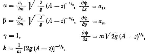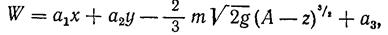 З рівностей (е) випливає, що функція W лінійно залежить від координат χ і y. Тому рішення рівняння (d) шукаємо у вигляді: