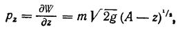 Залежності між узагальненими швидкостями й узагальненими імпульсами мають вигляд:
