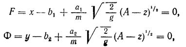 Тут рівності (i) — проміжні інтеграли, що визначають узагальнені імпульси розглянутої точки. Геометричні інтеграли (j) визначають сімейство просторових кривих — можливих траєкторій точки, що є лініями перетинання параболічних циліндрів з утворюючими, рівнобіжними осям Оу й Ох відповідно. Кінематичний інтеграл (k) дозволяє визначити кінематичні рівняння руху точки: