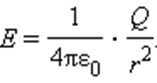 Відповідно до закону Кулона, напруженість електростатичного поля, створюваного точковим зарядом Q на відстані r від нього, дорівнює по модулю