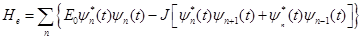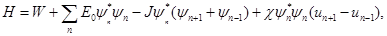Раніше ми вже зазначали, що гамільтоніан системи, що описує поширення збуджень у молекулярному ланцюжку, складається із гамільтоніана квазічастинки, гамільтоніана фононів і гамільтоніана взаємодії між ними. У співвідношенні ми нехтуємо внутрішньомолекулярними коливаннями, і тоді загальний гамільтоніан матиме вигляд: