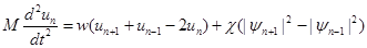 Ліва і права частина цього рівняння мають розмірність енергії, і тому цілком очевидно, що перед нами закон збереження енергії квазічастинки. Рівняння для комплексно спряженої функції [перше з рівнянь ] є аналогічним до рівняння , але записаним у спряжених функціях, і тому його не розглядаємо. Зрозуміло, що одного рівняння для електрона недостатньо, потрібно ще рівняння для деформації. Його отримаємо, підставивши гамільтоніан у друге рівняння і замінивши pn = Mun. Після спрощення отримаємо друге шукане рівняння [4]:
