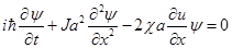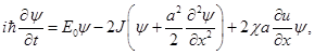 Це і буде перше шукане рівняння, що описує поширення квазічастинки (перші два члени правої частини) і взаємодії її з деформацією (третій член) [4].