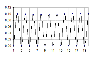 Зрозуміло, що система врешті-решт мусить прийти до стану рівноваги, і гармонійні коливання – це тривіальний стаціонарний стан, який ми і отримали. На графіку 4 видно, як збудження перейшло з центру до країв, а потім (графіки 5-6) рівномірно поширилось на всі вузли одновимірної ґратки (молекули ланцюжка):