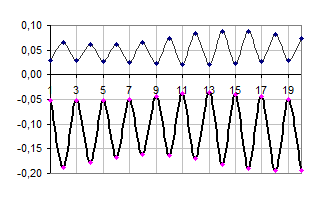 Нарешті, на графіках 12-15 спостерігаємо перехід хвилі у гармонійну: