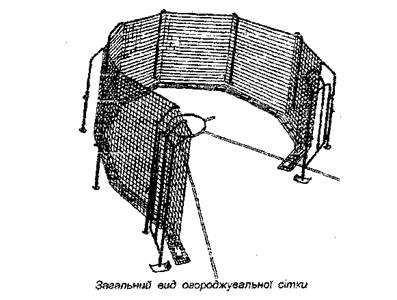 Вимоги до розміру вічок, дроту та ниток огороджувальної сітки такі ж, як і у метанні диска, але міцність на розрив має становити не менше 130 кг.