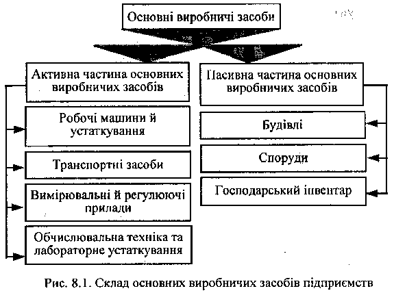 На рис 8.1 наведено склад основних виробничих засобів підприємства.
