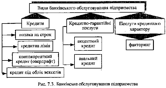 Підприємства можуть отримати різноманітні види кредитів та послуги кредитного характеру (рис. 7.3).
