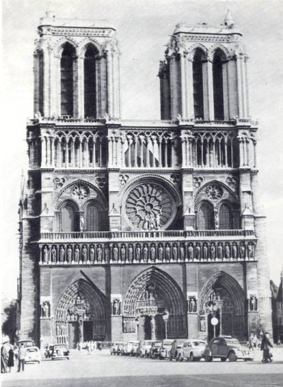 У 1163 р. на острові Сіте — історичному центрі Парижа, на місці старої єпископської капели св. Стефана, король Людовик IX у присутності римського папи урочисто заклав новий собор французької столиці Нотр-Дам — собор Паризької богоматері. Собор будували поетапно: у 1182 р. було завершено його східну частину, у 1200 — західну, у XIII ст.— західний фасад і його скульптурні роботи. Будівництво собору тривало до середини XIV ст.