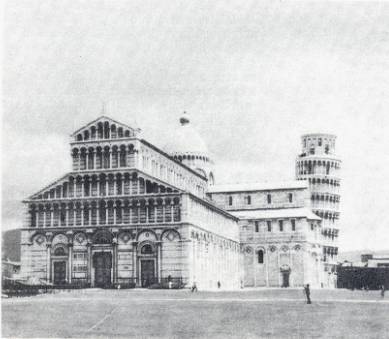 Будівництво ансамблю тривало довго. Собор почав будувати в 1063 р. майстер Бускето. Це був перший італійський зодчий, ім'я якого дійшло до наших часів. На початку ХІІ ст. будівництво завершував майстер Райнальдо. Пізніше, у 1153 р., архітектор Діоттисальві розпочав будівництво хрещальні — баптистерію. І, нарешті, в 1173 р., як вважають, майстер Бонаніо і запрошений з австрійського міста Інсбруку майстер Вільгельм починають споруджувати кампанилу — славнозвісну падаючу башту. Останні дві споруди добудовувалися в наступні роки, а сучасного вигляду вони набули лише в XIV ст. Перше, що впадає у вічі, коли оглядаєш пізанський ансамбль,— це незвичайна краса і чарівність. Усі споруди ансамблю наче випромінюють світло, переливаючись як дорогоцінні перлини ніжними відтінками блакитних, рожевих, зеленкуватих топів мармурових колон і облицювань фасадів та яскравих вкраплень мозаїчних інкрустацій. Ліванські споруди повною мірою позначені античністю і рисами життєрадісного мистецтва італійських міст. Ось чому цей варіант романського стилю називають Проторенесансом або Передвідродженням.