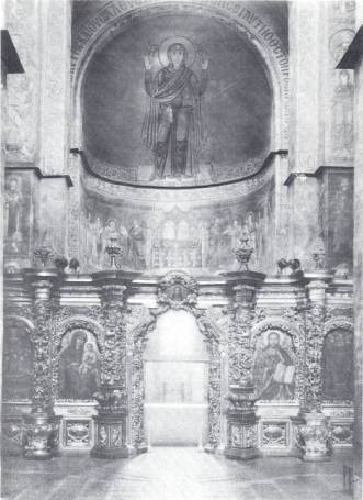 Заходячи в собор з освітлених зовнішніх галерей, потрапляєш у напівзатемнені анфілади бокових нефів. А далі розкриваються нові просторові перспективи. Стіни і стовпи бокових нефів розписано фресками, трохи приглушеними за своїм колоритом. Найбільше враження справляє центральний простір, залитий світлом, блиском золотофонних мозаїк, широко розкритий вгору. У центральному куполі, за візантійською традицією,— мозаїчне зображення Христа. А нижче, на вівтарній апсиді, на золотому фоні зображено богоматір, що молиться (т. зв. Оранта). Потім — сцена «євхаристії» — причащання апостолів, а ще нижче — постаті «отців церкви», виконані мозаїкою з неперевершеною майстерністю. На трьох стінах західної частини центрального простору був великий груповий портрет родини Ярослава Мудрого. Окремі зображення цього портрета збереглися до наших днів. Винятково цікавими є розписи стін башт. Усі вони мають світський характер: зображення музикантів, сцен полювання, константинопольського гіподрому, де відбувалися змагання на колісницях, тощо.