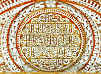 У центрі верхнього напису поміщено тамгу - символ династії Ґераїв (цей знак зображувався в Криму на державних печатках і на монетах).