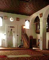 Інтер'єр мечету: міхраб (ніша в південній стіні), мімбер (дерев'яна катедра проповідника). Праворуч - вікна Ханської ложи