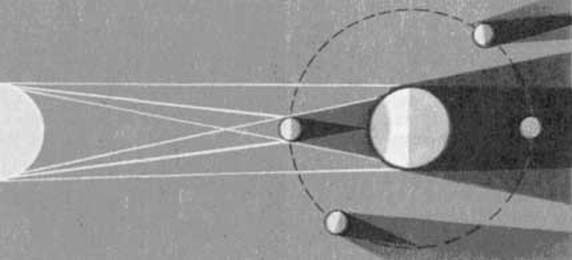 Мал.3 Схема затемнень Місяця і сонця (масштаб малюнка не додержано)