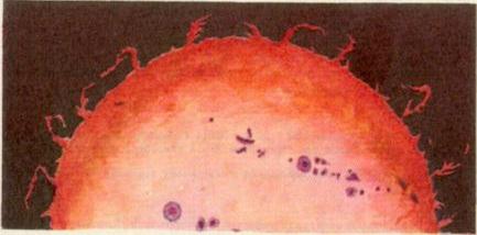На фотографіях фотосфери (мал. 68) добре помітна її тонка структура у вигляді яскравих «зерняток» — гра н у л розміром у середньому близько 1000 км, розділених вузькими темними проміжками. Ця структура називається грануляцією. Вона є результатом руху газів, шо відбувається в розміщеній під Ьотосферою конвективній зоні Сонця.