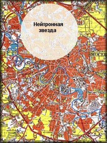 Розміри електронної зорі порівнюючи з розмірами міста Москва