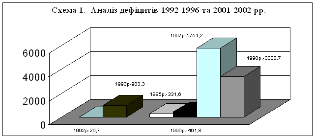 Обсяги Державного бюджету та бюджетний дефіцит за 1992-19998 роки