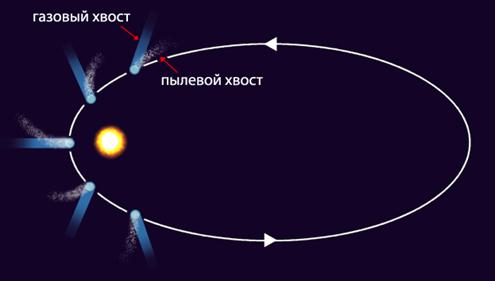 Хвости комет, як уже згадувалося, майже завжди спрямовані в протилежний від Сонця бік. Ф. О. Бредіхін на основі розробок Ф. Бесселя вивів більш викінчену механічну теорію кометних хвостів і запропонував поділити їх на три відособлені групи, залежно від величини відштовхуючого прискорення.
