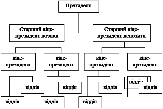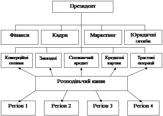 Це більш висока форма організації компанії ніж вищерозглянута система. Прикладом типового профіт-центру може слугувати трастовий відділ банку, фугкції якого в значній мірі обособлені і це дозволяє досить чітко оцінити затрати та результи роботи відділу. Структура банку з окремими профіт-центрами показана на мал.4.