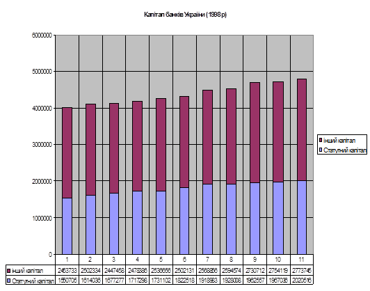 На мою думку, такому зростанню статутних фондів сприяла стабілізація національної грошової одиниці, бо саме за період значної інфляції припадає найбільша втрата банківського капіталу.