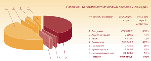 Рис. 2.2.2 Показники та питома вага вексельних операцій у 2000р.