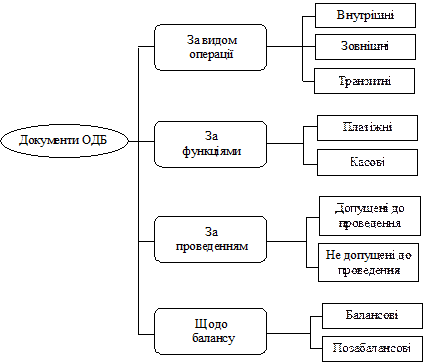 Платіжні документи, з якими працює ОДБ, можна розподілити на внутрішні, зовнішні та транзитні.