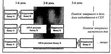 Зауважимо, що кошти банку «Б», які перебувають на транзитному рахунку, ще не можуть бути використані банком (для зарахування на рахунок клієнта, виконання початкових платежів на цю суму тощо).