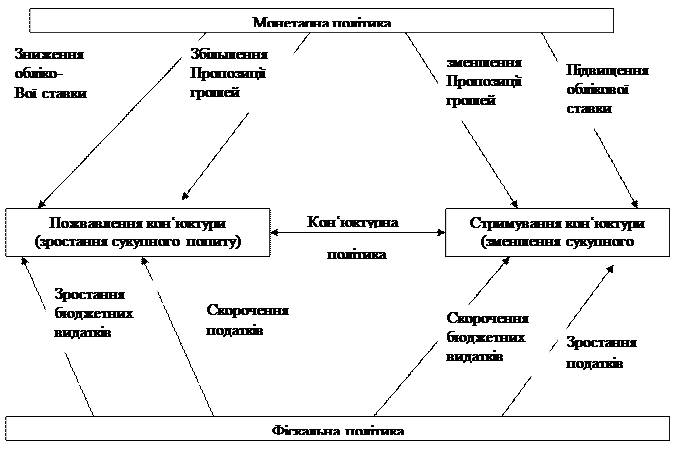 Рис. 2.2. Механізм взаємозв'язку монетарної та фіскальної політики в межах кон'юнктурної політики