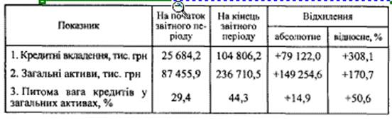 2. Аналіз масштабів і динаміки кредитних вкладень.