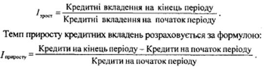 Наступним етапом аналізу кредитних операцій є визначення темпів зростання та приросту. Темп зростання визначається як співвідношення суми кредитних вкладень на кінець звітного періоду та суми на початок періоду: