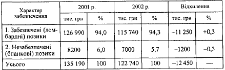 АНАЛІЗ СТРУКТУРИ КРЕДИТНОГО ПОРТФЕЛЯ ЗАЛЕЖНО ВІД ХАРАКТЕРУ ЗАБЕЗПЕЧЕННЯ