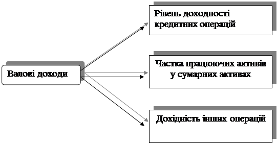 Формування валових доходів банків за джерелами можна виразити у вигляді залежності, зображеної на рис. 1.3.